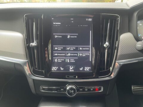 This clean 2019 Volvo S90 h T8 R Design Pro comes with full service history with recent service and long MOT… it also comes with many extras such as advanced features, including a rear park assist camera and front and rear park assist sensors to make manoeuvring effortless. Stay connected on the go with the Bluetooth handsfree system, and enjoy enhanced comfort and visibility with the Winter Pack, which includes a head up display and a heated steering wheel.